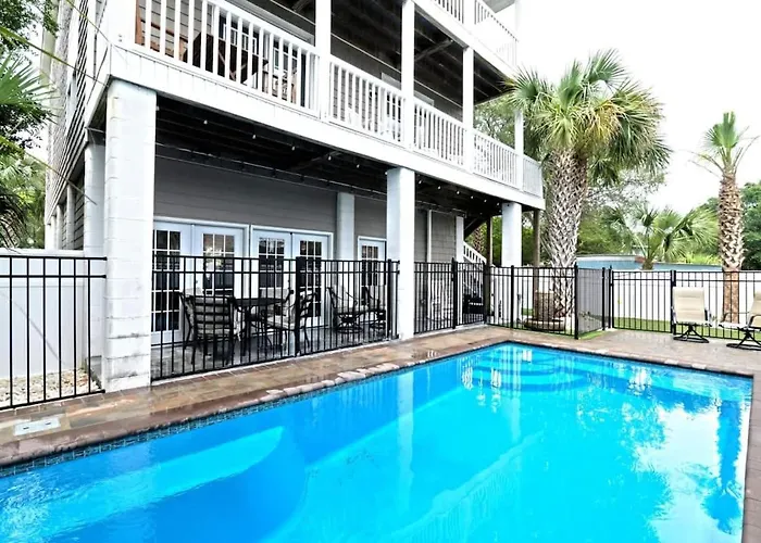 Situated a mere 1.2 km from the Crescent Beach, the 4-bedroom Sun And Games House W Swimming Pool Tons Of Games Putting Green Myrtle Beach villa features a patio with views of the city. Offering a private pool, the accommodation invites guests to visit the McLean Park, located nearly 25 minutes' walk away.